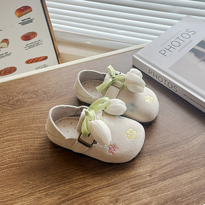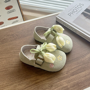 女童田园风刺绣花皮鞋2025夏季新款软底郁金香勃肯鞋百搭洋气单鞋