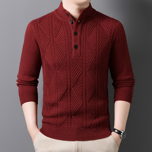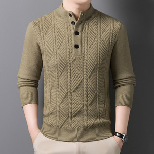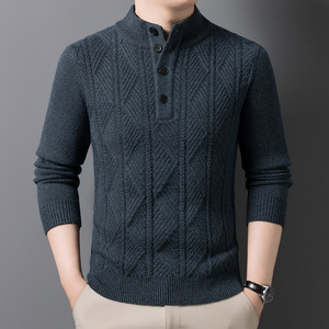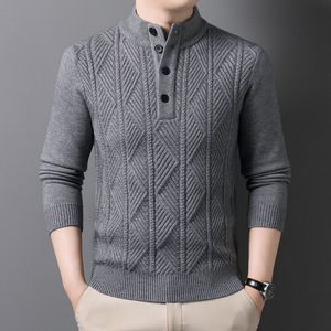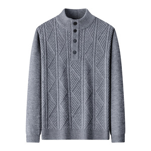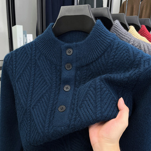 四粒扣加厚毛衣男2025秋冬季新款时尚休闲高领提花男士针织衫批发