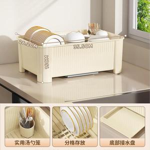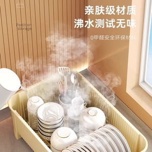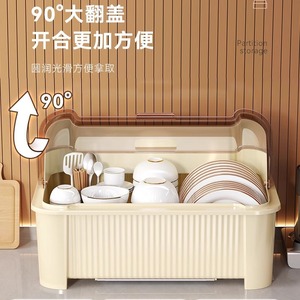 碗筷收纳盒放碗碟收纳架厨房家用多功能带盖沥水置物架碗柜收纳盒