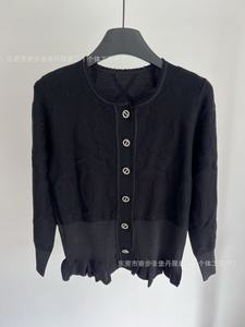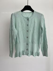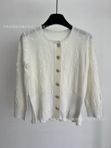南油高定 25早秋新品定 位提花细针羊毛钩花圆领针织开衫女