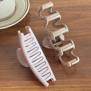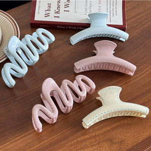 韩国高级感奶油色发夹涂鸦波浪大号抓夹气质盘发鲨鱼夹子百搭发饰