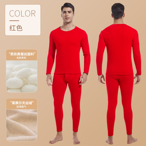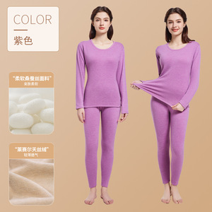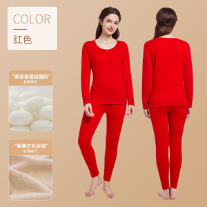 莱赛尔天丝绒内衣套装男女情侣秋衣秋裤打底加厚发热抗寒情侣款