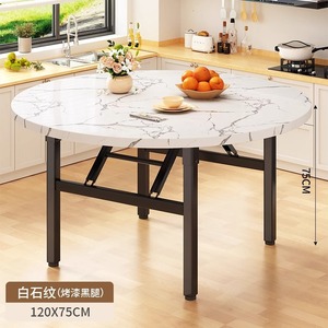 【白石纹】120*120*75圆桌 0.9米玻璃转盘