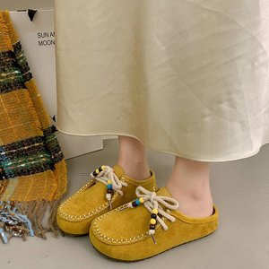 复古时尚百搭包头勃肯鞋女2025春季新款厚底博肯鞋增高包头半拖鞋