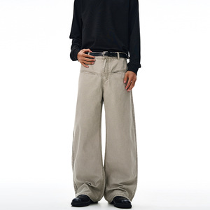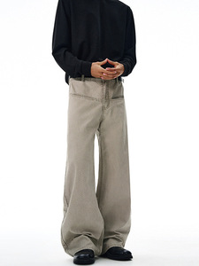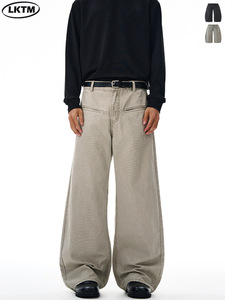 LKTM男装 美式复古珠帆布前插袋弯刀裤男女水洗显瘦垂感休闲长裤