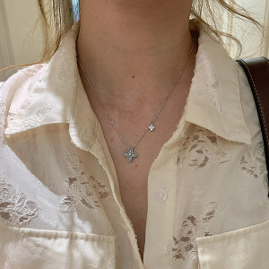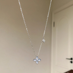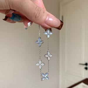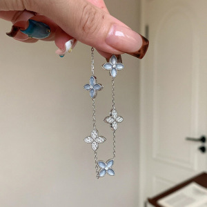 小红书爆款清冷氛围感灰蓝色四叶草款手链百搭高级感项链一件代发