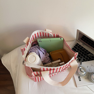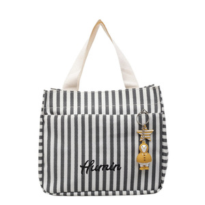 便当包跨境新款条纹时尚通勤手提包韩版大容量小众休闲百搭帆布包
