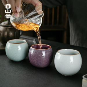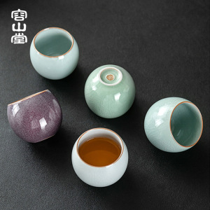 容山堂固德汝窑五大名窑主人杯茶杯套装开片可养品茗杯茶盏礼品