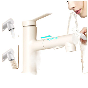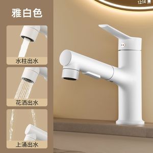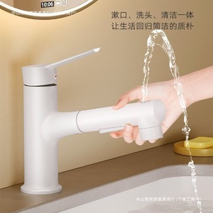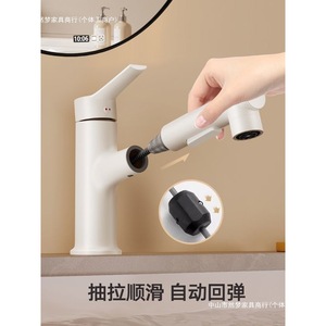 奶油风抽拉式水龙头洗脸盆冷热水白色洗手盆防溅卫生间台盆浴室柜
