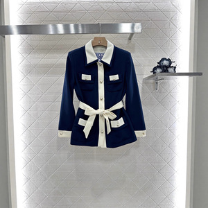 25秋季新款小香风气质翻领撞色腰带收腰廓形时尚外套