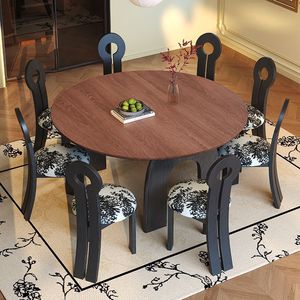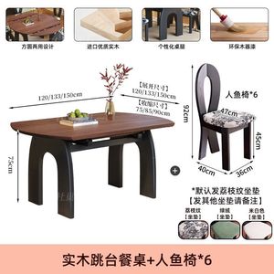 中古风全实木餐桌餐桌椅组合方圆两用复古折叠家用伸缩饭桌桌子