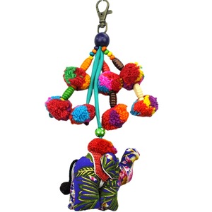 泰国彩色布艺小象毛球钥匙扣挂件云南民族风手工可爱绒球包包挂件