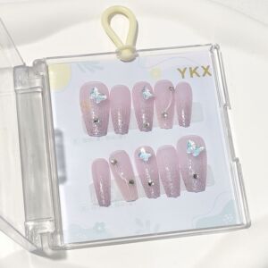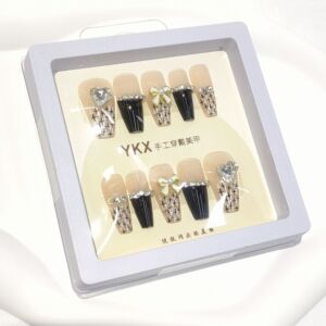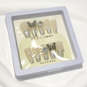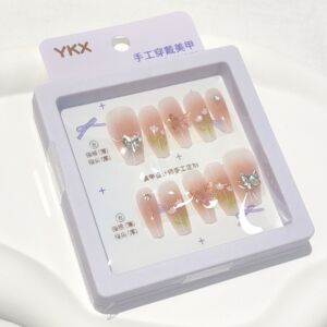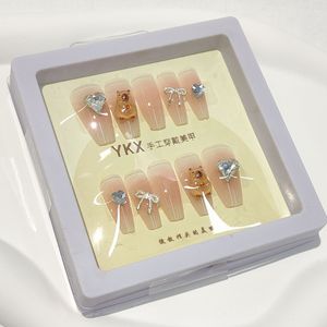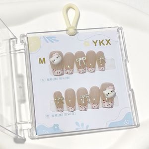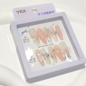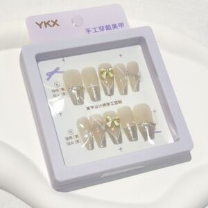 奶黄蝴蝶结新法式穿戴甲中长高级纯欲风美甲学生指甲贴可拆卸