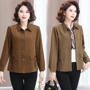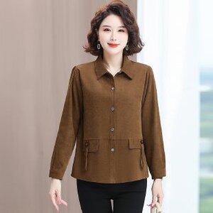 妈妈秋装洋气衬衫2025新款中年长袖薄上衣50多岁中老年女外套衬衣