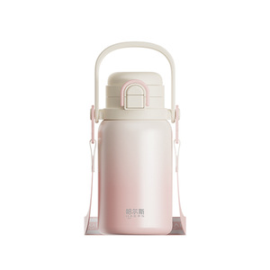 哈尔斯夏季斜挎元气保温杯高颜值女生儿童旅行吸管杯不锈钢随行杯