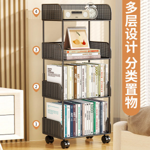 桌边书架学生卧室学习课桌旁书本收纳可移动书柜落地小推车置物架