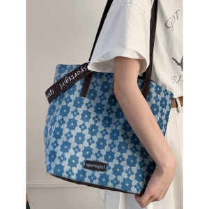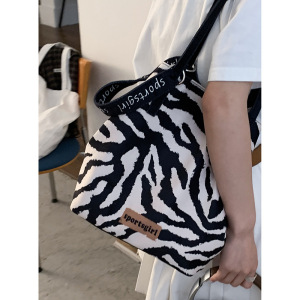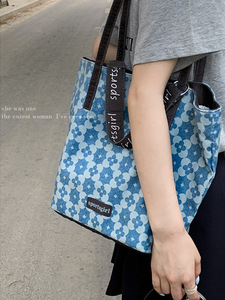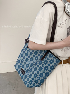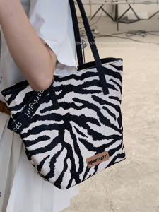 复古牛仔布包包女2025新款时尚韩版文艺托特包大容量斑马纹单肩包