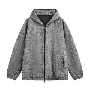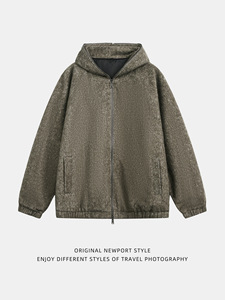 慵懒风马海毛连帽外套男秋冬廓形宽松毛呢夹克美式复古开衫卫衣