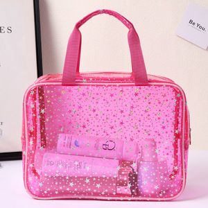 新款PVC洗漱包旅行拉链手提袋小星星化妆包便捷大容量收纳包