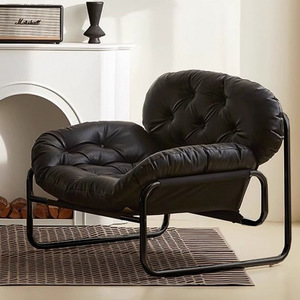 北欧风单人沙发椅客厅阳台铁艺沙发中古风纯抓皮午休铁艺沙发