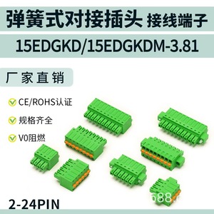 弹簧式对接插头接线端子15EDGKD/15EDGKDM-3.81mm免焊接线 单插头