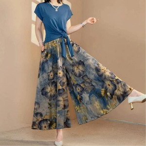 夏季裙裤时尚百搭A型显瘦休闲半身裙垂感薄款百搭印花大摆九分裙