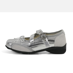 羊皮版银色真皮复古玛丽珍女鞋夏季百搭蝴蝶结芭蕾舞平底浅口单鞋
