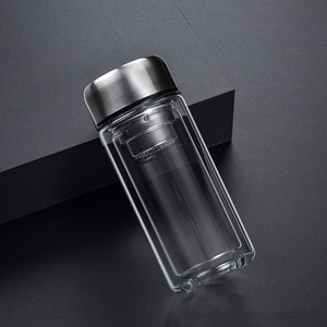 双层耐高温玻璃杯车载水晶杯带盖泡茶杯子可印制logo女士玻璃杯