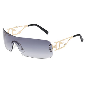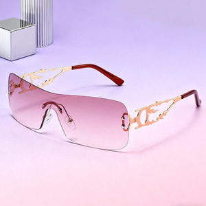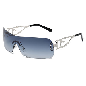新款跨境太阳镜欧美个性辣妹无框镂空墨镜时尚街拍穿高级感眼镜