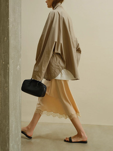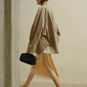 CHIC轻薄油蜡感极简垂荡立领蝙蝠袖挺阔A型宽松外套中长款风衣秋