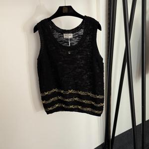 2025夏季南油高对岸热销外贸新款logo金丝亮片镶嵌条纹针织背心女