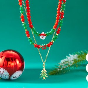 跨境欧美圣诞节软陶串珠项链圣诞风格挂坠亚马逊热卖choker颈链