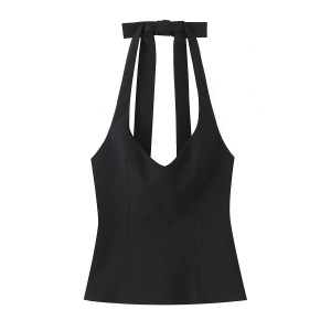 PB&ZA女装2025年秋季新款甜辣风修身背部蝴蝶结挂脖领上衣7966889