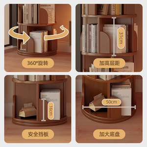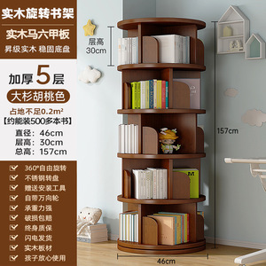 实木旋转书架360度落地置物架儿童绘本架卧室床头不占地方的书柜