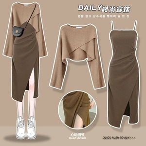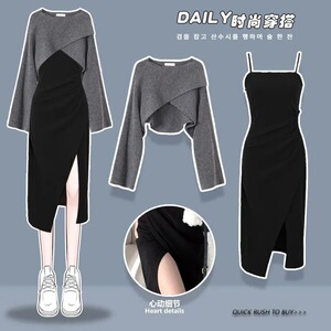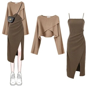 大码女装秋季套装女2025新款穿搭设计感针织毛衣女配连衣裙两件套