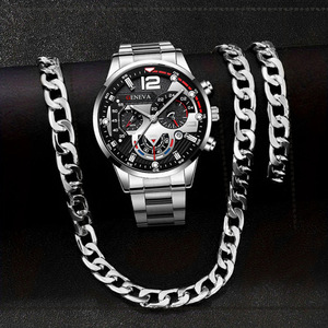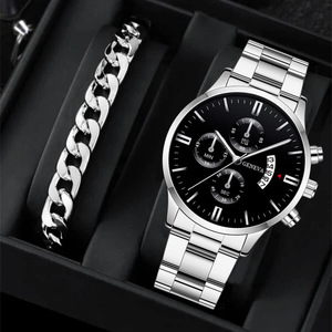 跨境热销男士手表男款套装时尚高级感3件/套玻璃石英表日历手表男