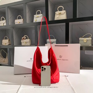 辛芷蕾同款红色包包尼龙帆布包女式2025新款托特包大包单肩斜挎包