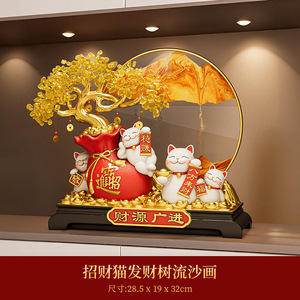 新中式发财树招财猫摆件开业礼物客厅店铺前台装饰品乔迁新居礼品