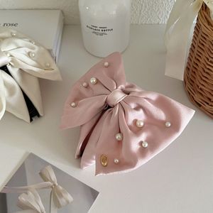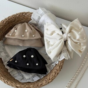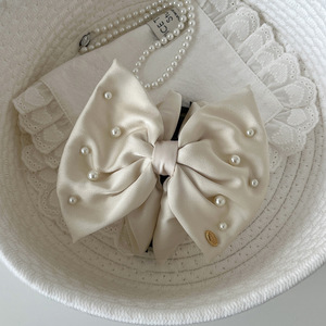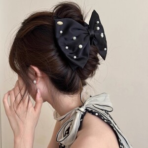 法式蝴蝶结珍珠抓夹女生甜美温柔公主头发夹后脑勺盘发鲨鱼夹发饰