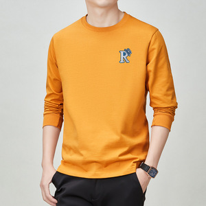 100%纯棉男士圆领卫衣春秋季重磅男式全棉长袖t恤打底衫体恤男装
