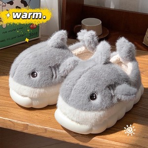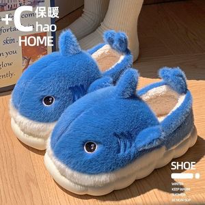棉拖鞋女全包跟鲨鱼冬季防寒防滑加绒室内厚底保暖卡通外穿棉鞋男