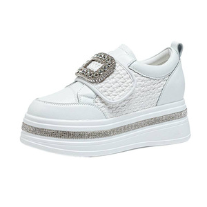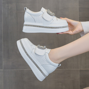 跨境年秋季新款单鞋魔术贴水钻运动休闲厚底小个子内增高小白鞋女
