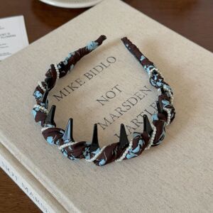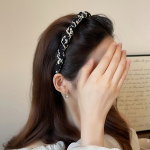褶皱珍珠链缠绕发箍女高颅顶压带齿防滑头箍外出百搭头饰发卡发捆