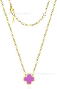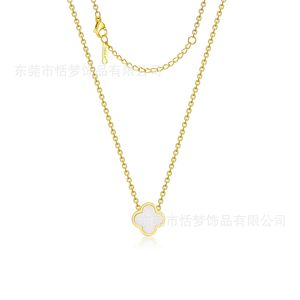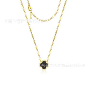 高品质钛钢光面四叶草单花项链跨境亚马逊BS款镀18K金不掉色项链