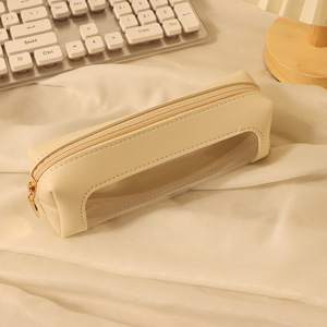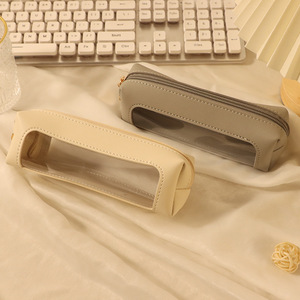 PU笔袋ins日系透明开窗化妆刷收纳包大容量学生高颜值收纳透明包