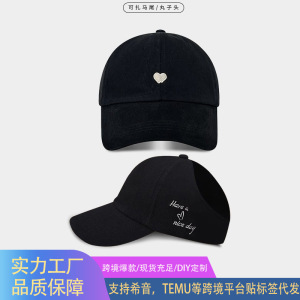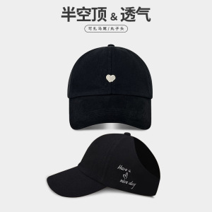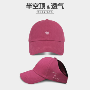 夏季户外遮阳棒球帽学院风甜酷爱心刺绣扎马尾空顶帽学生运动帽