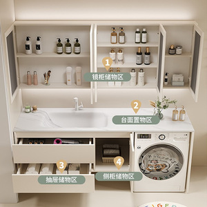 高端定制岩板热弯一体浴室洗衣柜阳台洗脸池卫生间洗手洗漱台组合