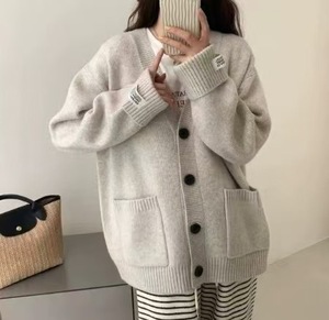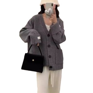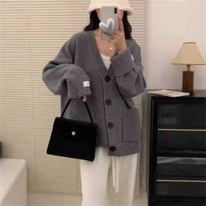 2025简约大板秋冬新款复古针织开衫上衣宽松显瘦软糯毛衣女外套女