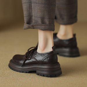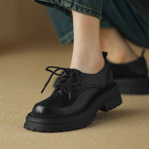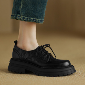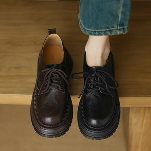 复古小皮鞋2025春季新款女鞋厚底平底低帮鞋系带深口单鞋