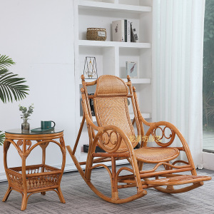天然植物真藤摇摇椅藤椅阳台休闲椅家用靠背躺椅午睡椅老人逍遥J&